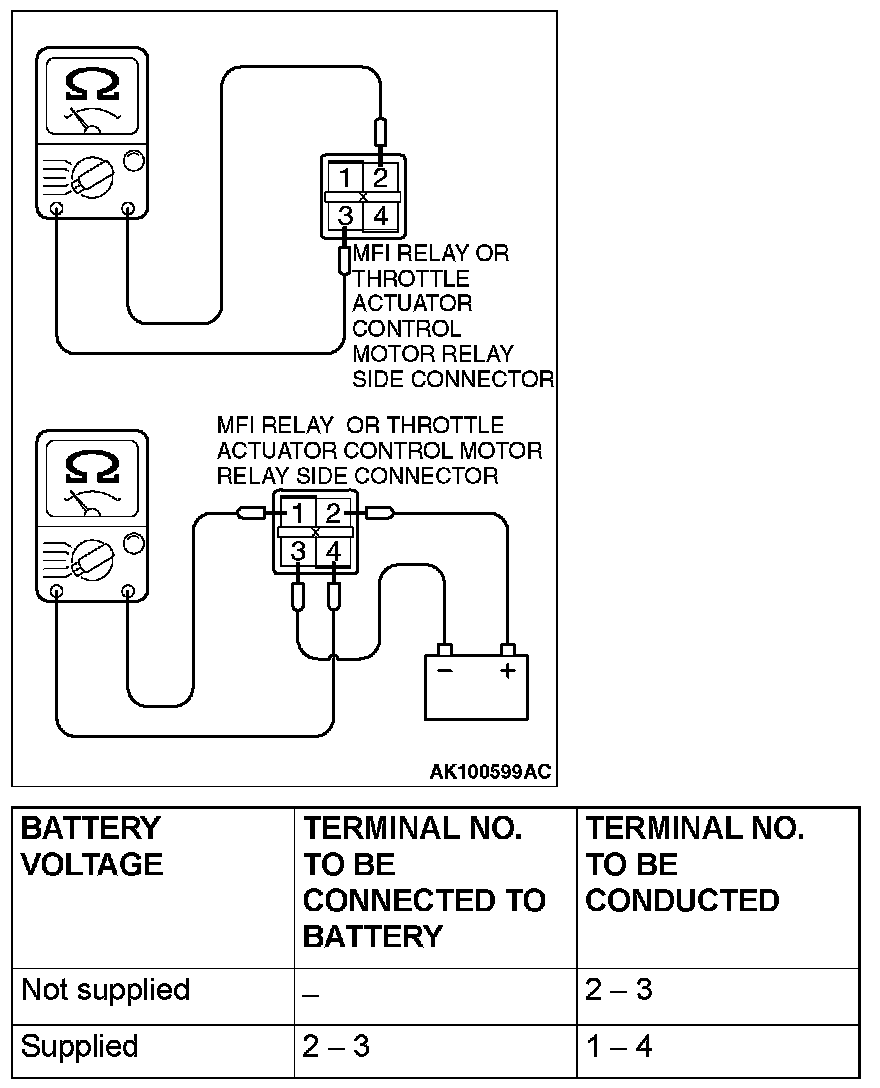 MULTIPORT FUEL INJECTION (MFI) RELAY AND THROTTLE ACTUATOR CONTROL MOTOR RELAY CONTINUITY CHECKMultiport Fuel Injection (MFI) Relay And Throttle Actuator Control Motor Relay Continuity Check: