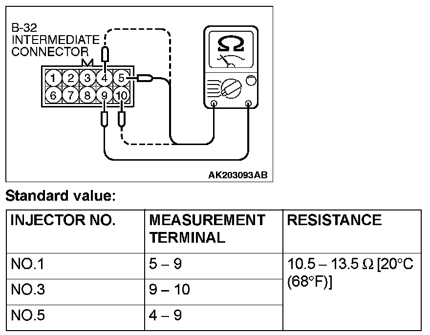 Standard value: 10.5 - 13.5 ohms [at 20° C (68° F)]