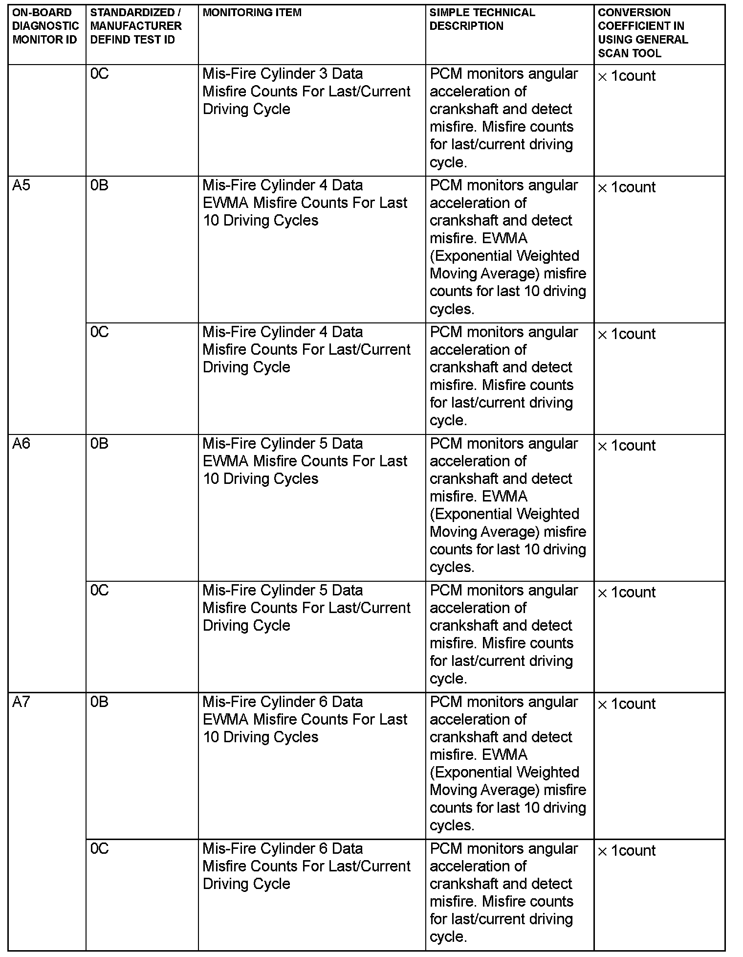 MODE 6 REFERENCE TABLEThe powertrain control module (PCM) monitors the condition of emission control system.