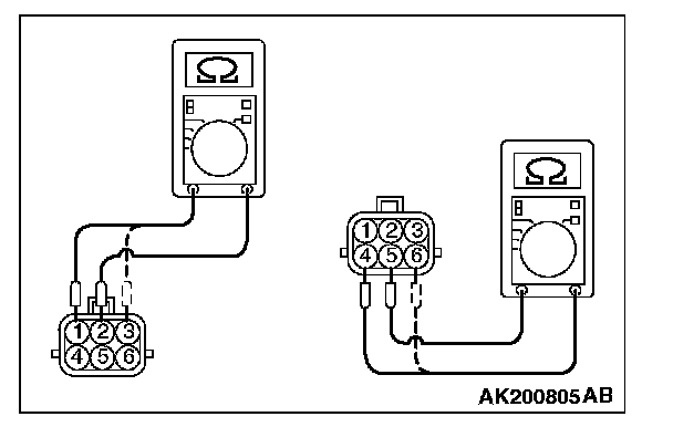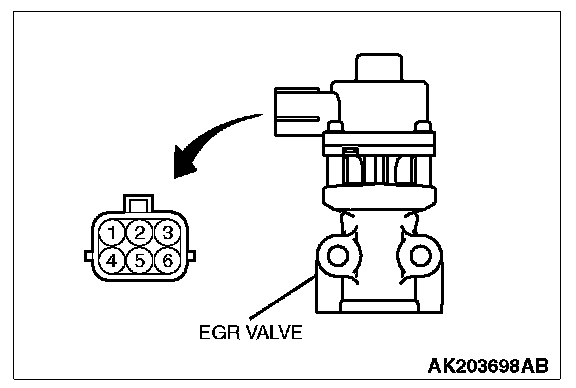 4. Measure the resistance between terminal No. 5 and either terminal No. 6 or terminal No. 4 of the connector at the EGR valve.