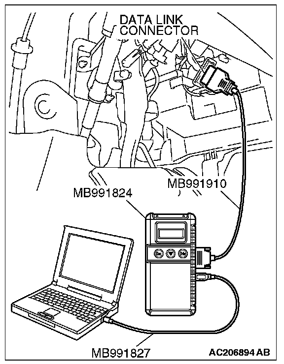1) Connect scan tool MB991958 to the data link connector.