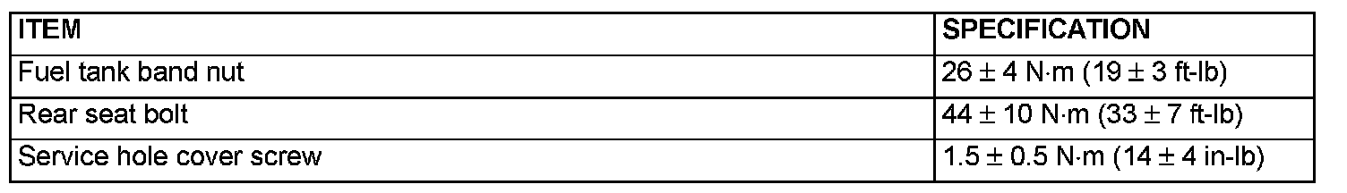 Fastener Tightening Specifications: