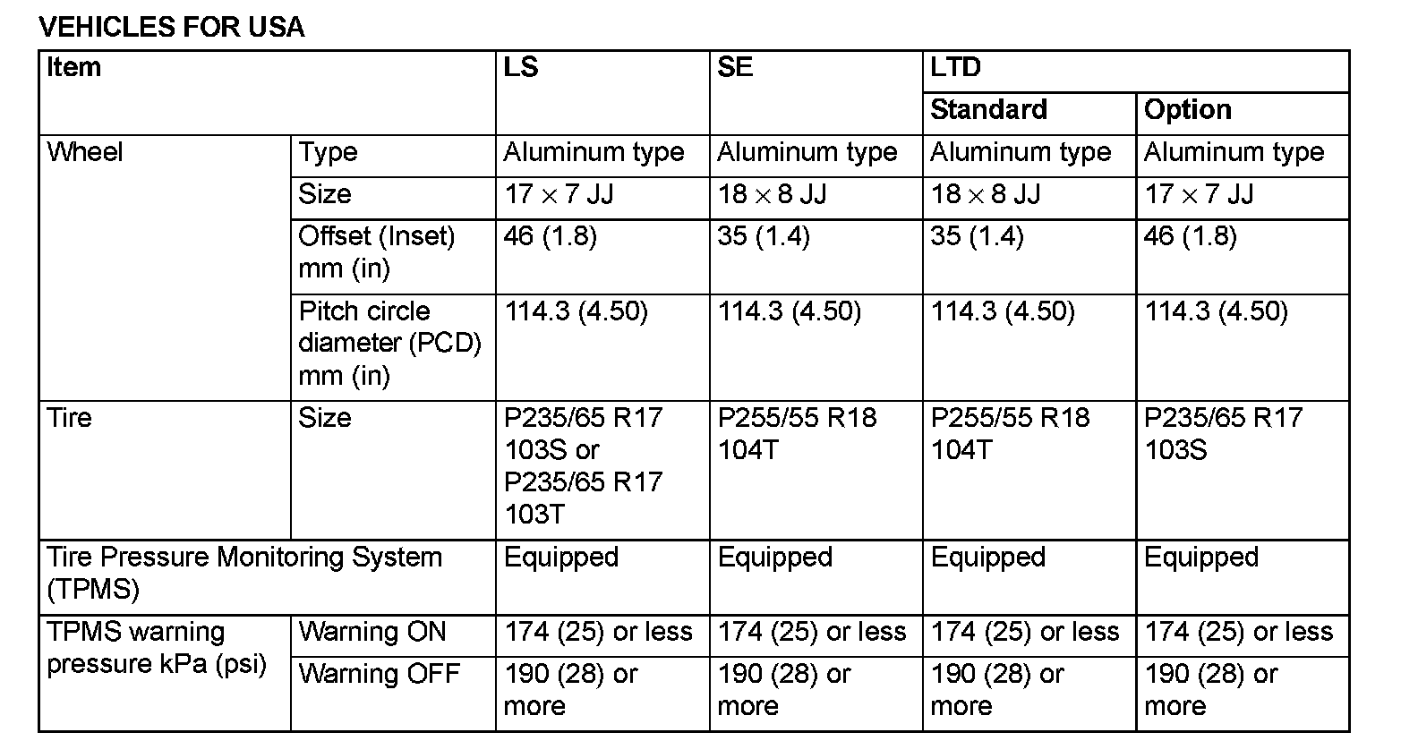 VEHICLES FOR USA
