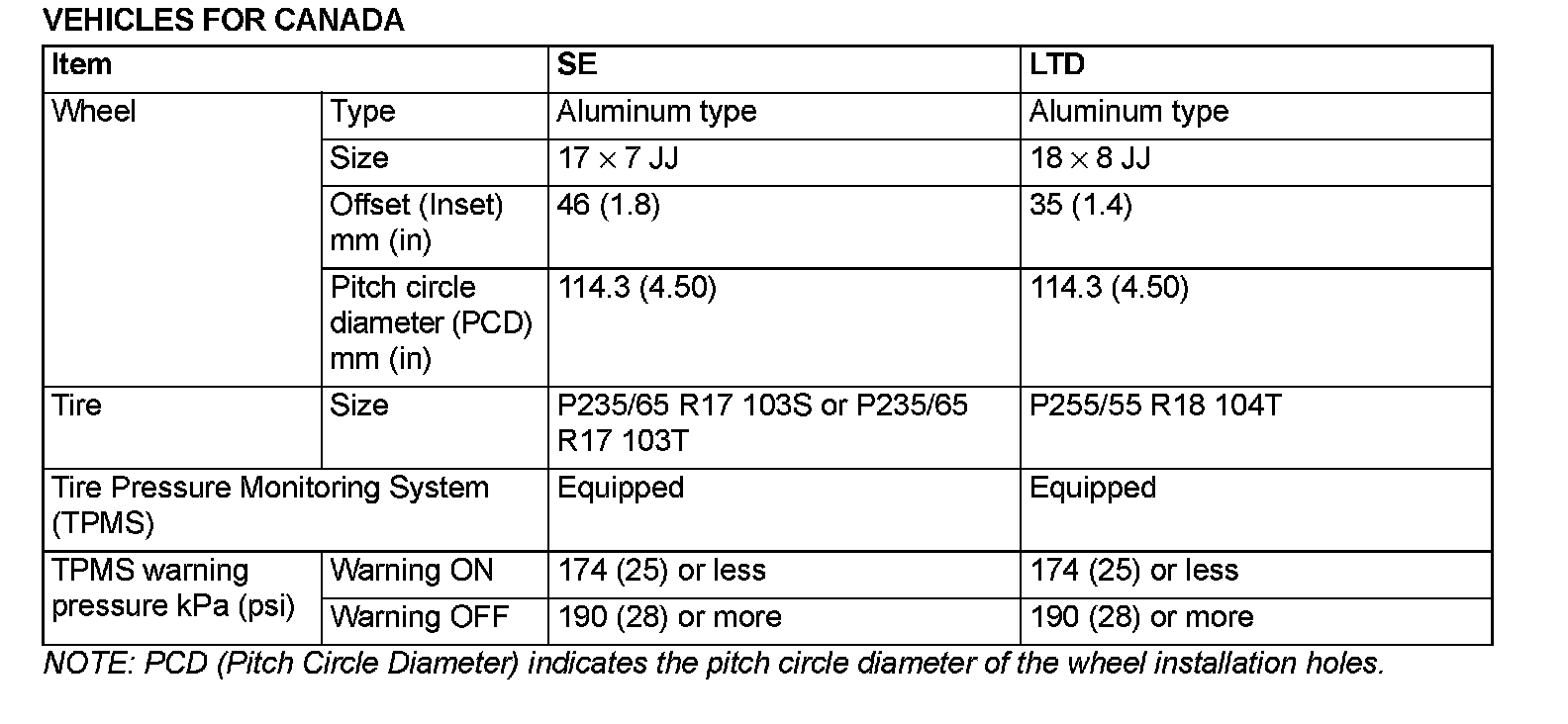 VEHICLES FOR CANADA