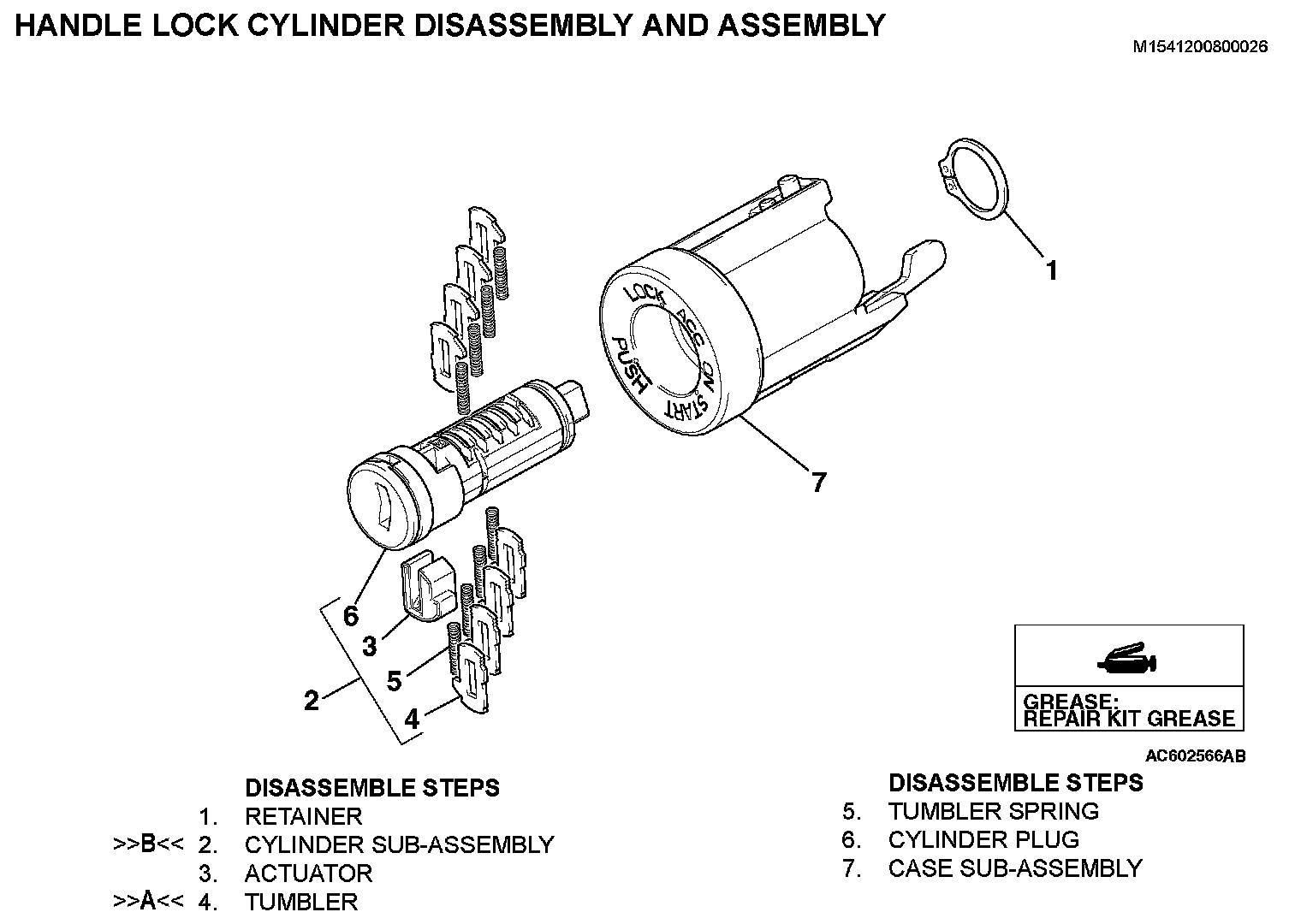 HANDLE LOCK CYLINDER DISASSEMBLY AND ASSEMBLYRemoval Steps (1-7):