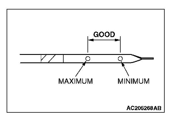 7. Pull out the oil dipstick slowly and check that the oil level is within the marks on the oil dipstick.