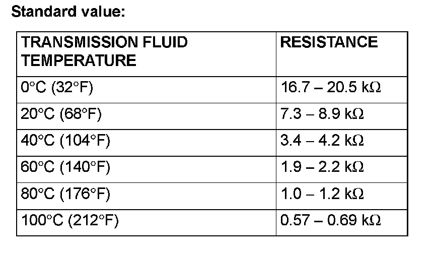 TRANSMISSION FLUID TEMPERATURE SENSOR CHECK1. Remove the transmission fluid temperature sensor.