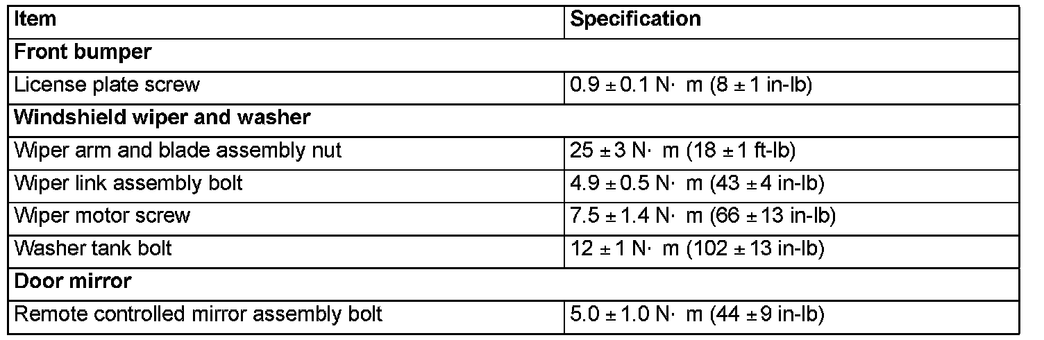 Fastener Tightening Specifications: