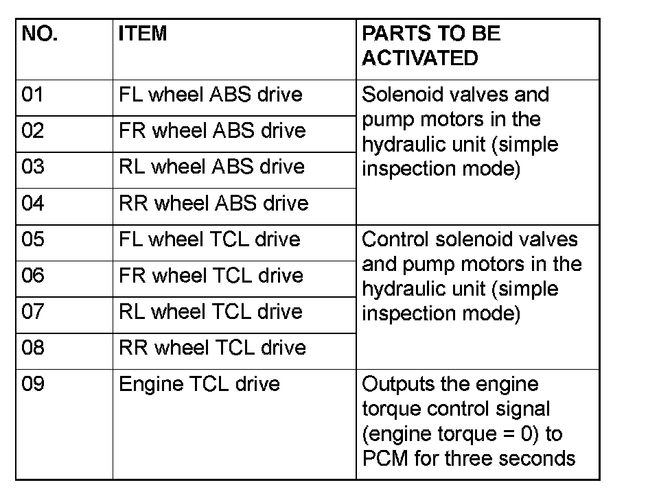 NOTE: If the TCL/ASC-ECU runs down, actuator testing cannot be carried out.