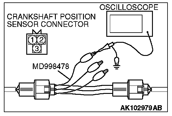 4. Connect the oscilloscope probe to crankshaft position sensor connector terminal No. 2 (black clip of special tool).