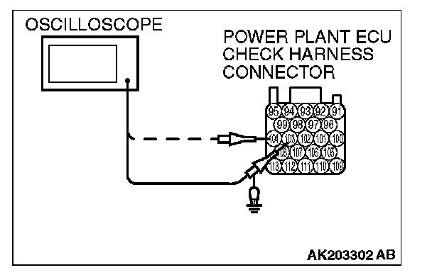 3. Connect the oscilloscope to check harness terminal No. 103. (Check the crankshaft position sensor signal wave pattern.)