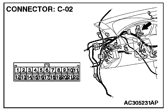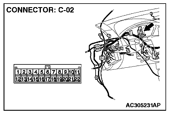STEP 1. Check joint connector (3) C-02 and ETACS-ECU connector C-218 for loose, corroded or damaged terminals, or terminals pushed back in the connector.