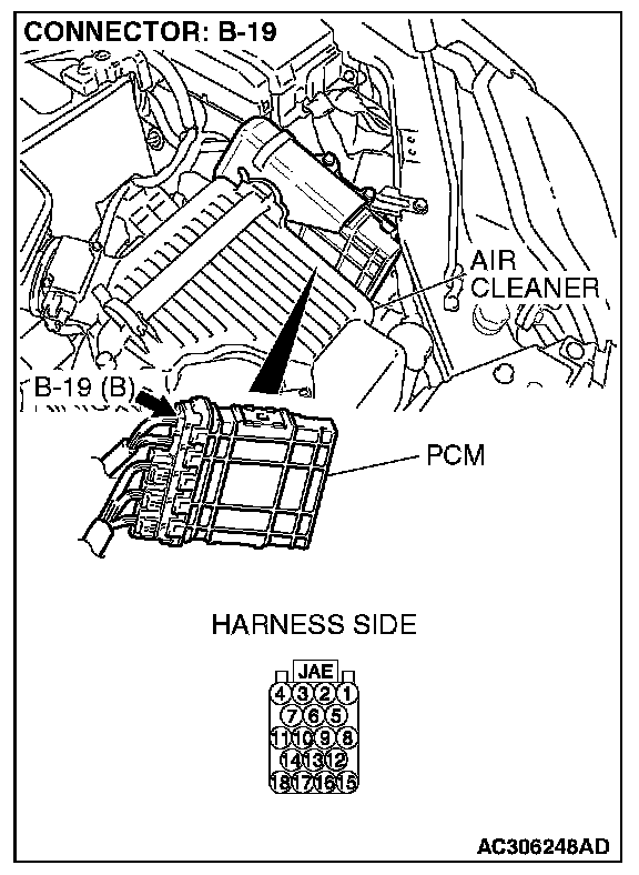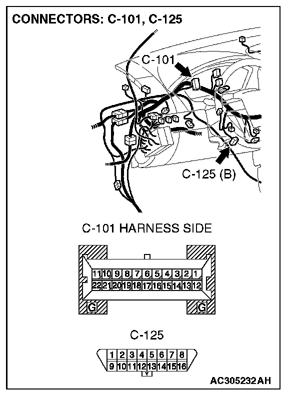 STEP 1. Check powertrain control module connector B-19, combination meter connector C-101 and data link connector C-125 for loose, corroded or damaged terminals, or terminals pushed back in the connector.