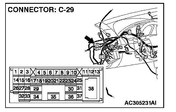 STEP 4. Check intermediate connector C-29 for loose, corroded or damaged terminals, or terminals pushed back in the connector.