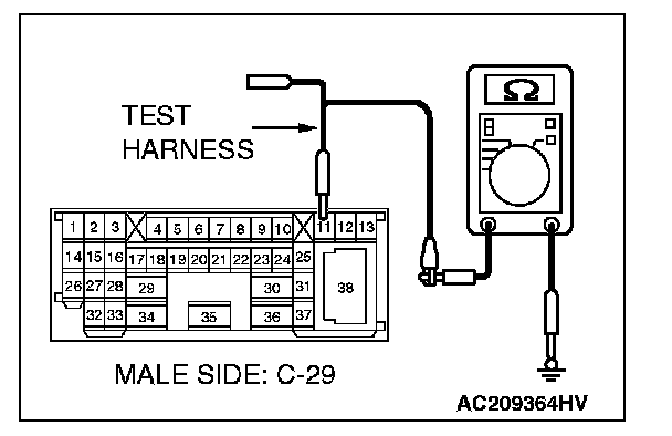 1. Disconnect intermediate connector C-29, and measure the resistance at the male side (at front wiring harness side).