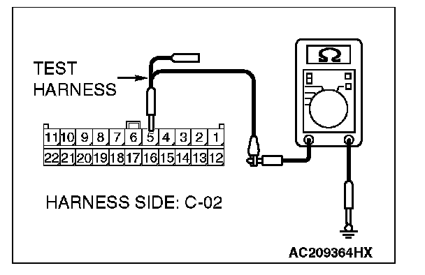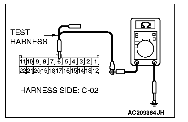 1. Disconnect joint connector (3) C-02 and ETACS-ECU connector C-218, and measure the resistance at the wiring harness side of joint connector (3) C-02.