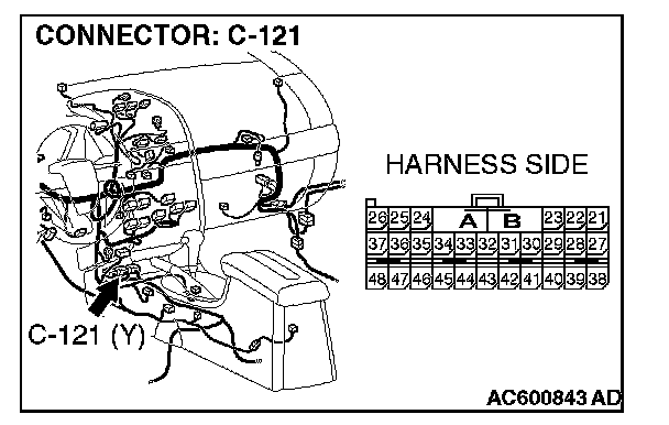 STEP 16. Check SRS-ECU connector C-121 for loose, corroded or damaged terminals, or terminals pushed back in the connector.