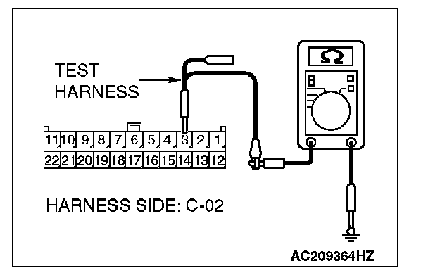 1. Disconnect joint connector (3) C-02, and measure the resistance at the wiring harness side of joint connector (3) C-02.