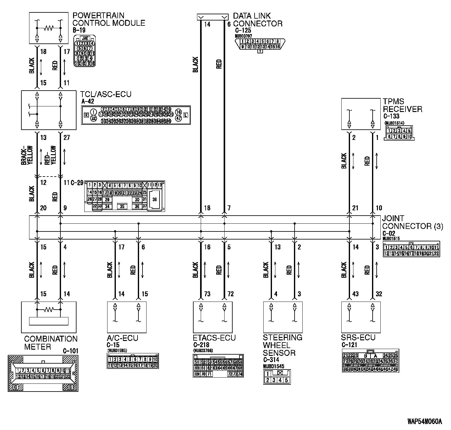 STEP 20. Check the CAN_L and H lines (communication lines including the TPMS reciver) between joint connector (3) and the TPMS reciver for a short circuit. Measure the resistance at joint connector (3) C-02.
