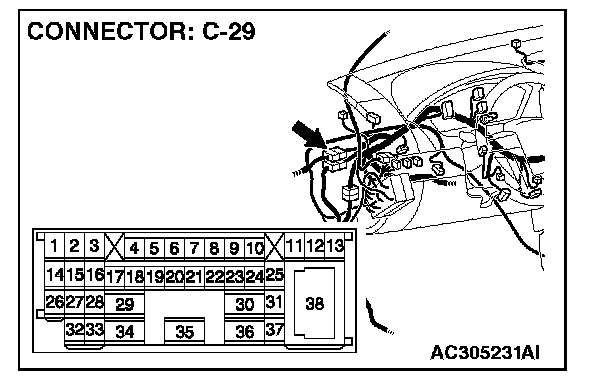 STEP 1. Check intermediate connector C-29 for loose, corroded or damaged terminals, or terminals pushed back in the connector.