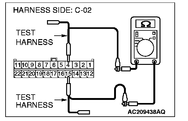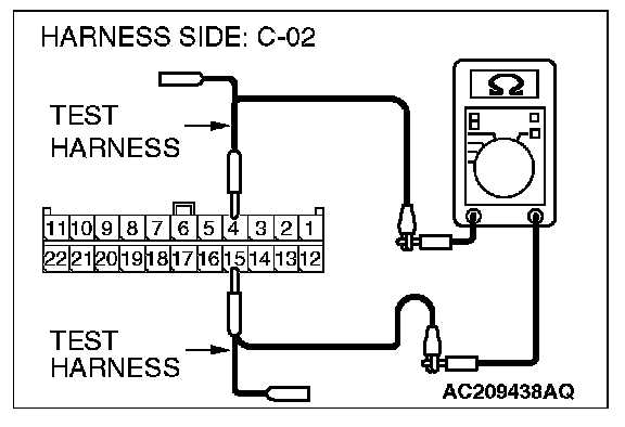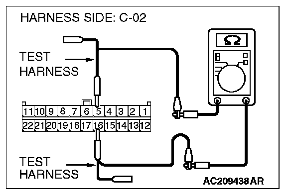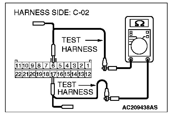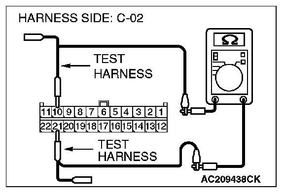 1. Disconnect joint connector (3) C-02 and ETACS-ECU connector C-218, and measure the resistance at the wiring harness side of joint connector (3) C-02.