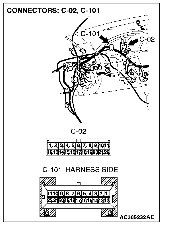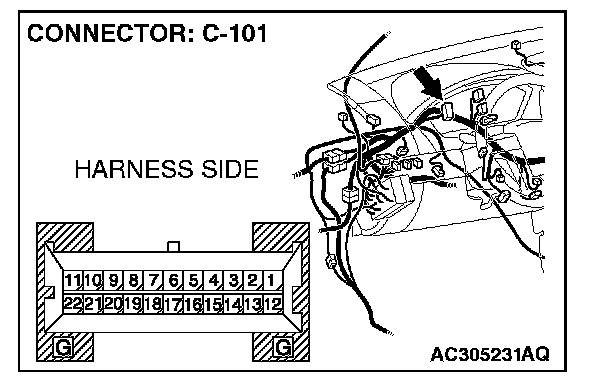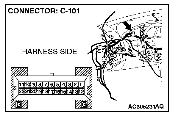 STEP 5. Check combination meter connector C-101 for loose, corroded or damaged terminals, or terminals pushed back in the connector.