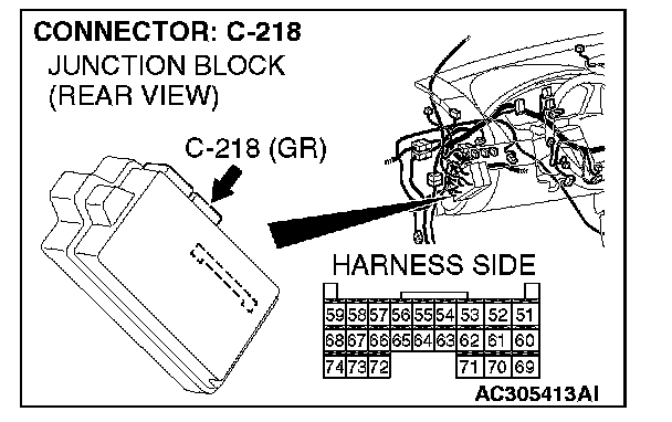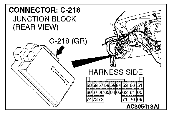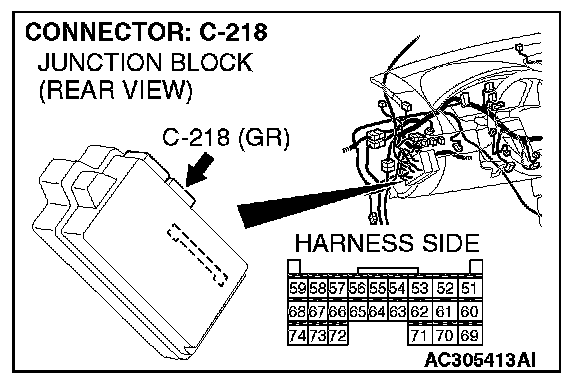 STEP 9. Check ETACS-ECU connector C-218 for loose, corroded or damaged terminals, or terminals pushed back in the connector.