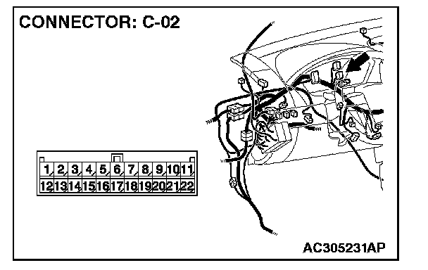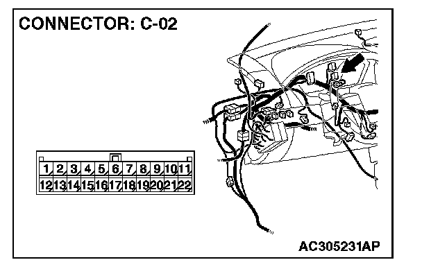 STEP 3. Check joint connector (3) C-02 for loose, corroded or damaged terminals, or terminals pushed back in the connector.