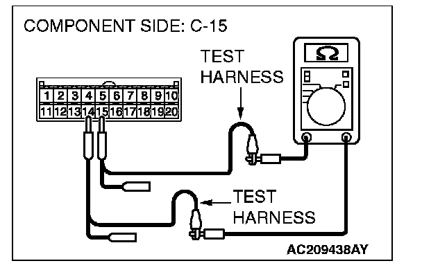 1. Disconnect A/C-ECU connector C-15, and measure the resistance at the component side of A/C-ECU connector C-15.