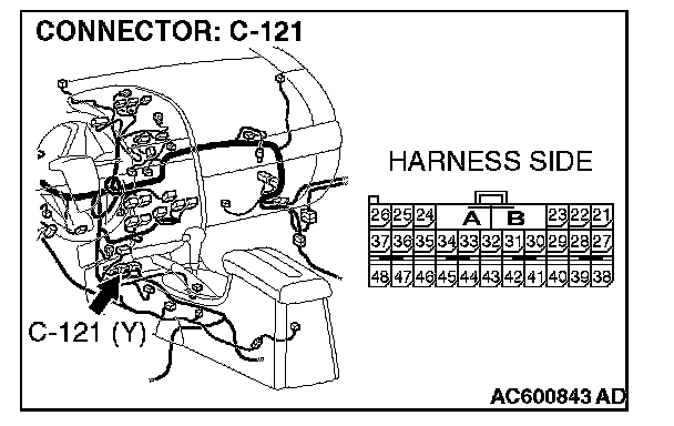 STEP 17. Check SRS-ECU connector C-121 for loose, corroded or damaged terminals, or terminals pushed back in the connector.