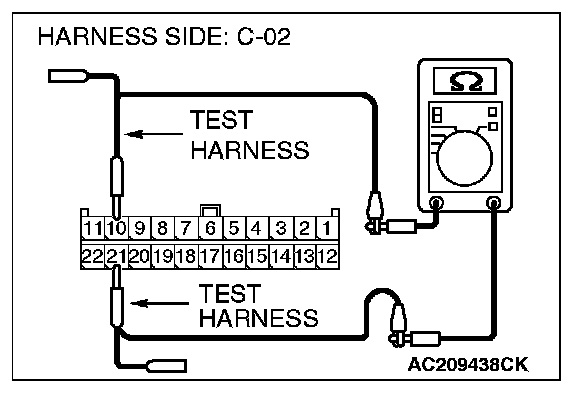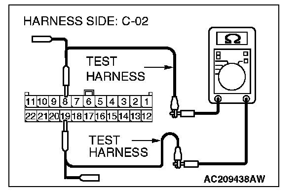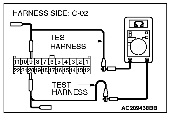 1. Disconnect joint connector (3) C-02, and measure the resistance at the wiring harness side of joint connector (3) C-02.