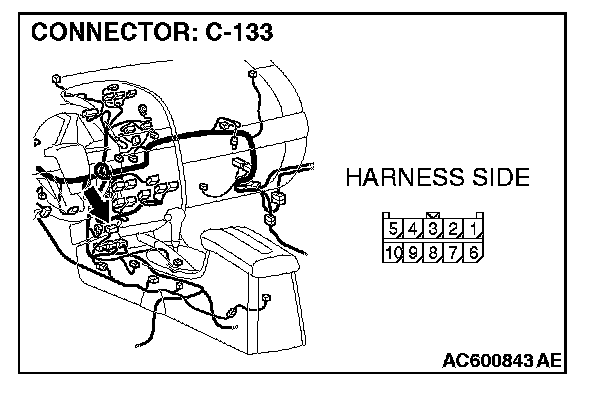 1. Disconnect TPMS reciver connector C-133, and measure the resistance at the component side of TPMS reciver connector C-133.