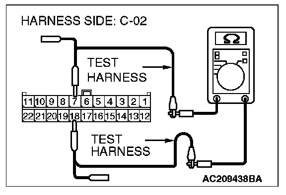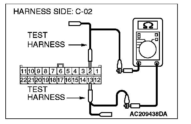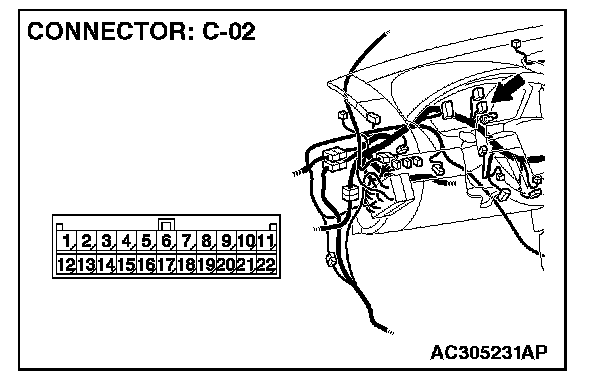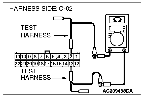 1. Disconnect joint connector (3) C-02 and multi-center display unit connector C-31 [Mitsubishi Multi Communication System], and measure the resistance at the wiring harness side of joint connector (3) C-02.