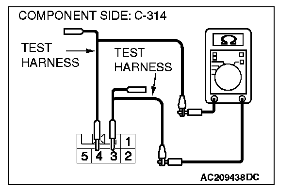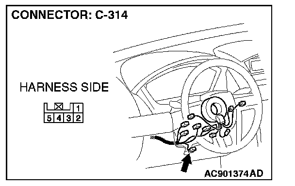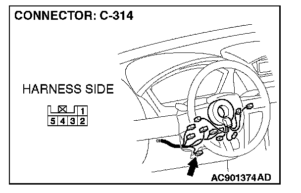 1. Disconnect steering wheel sensor connector C-314, and measure the resistance at the component side of steering wheel sensor connector C-314.