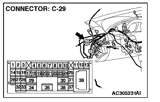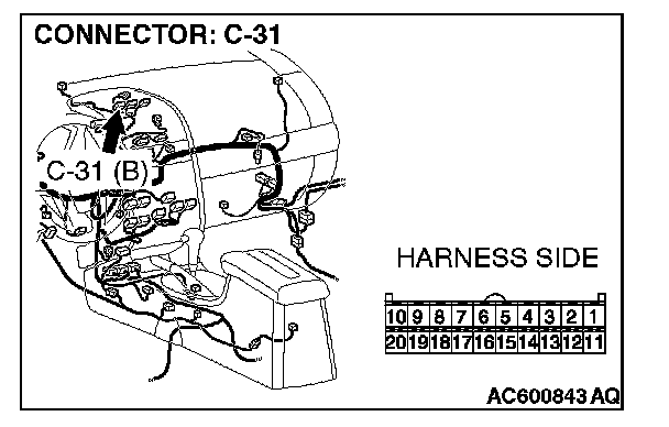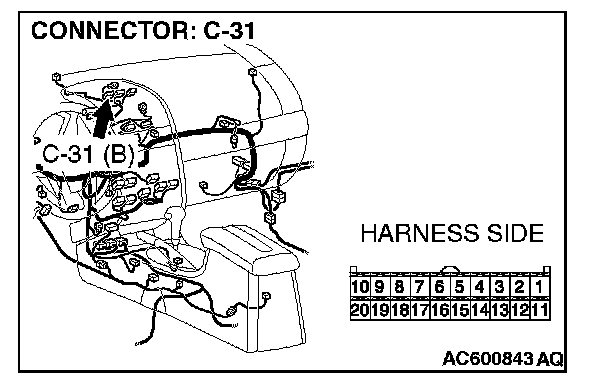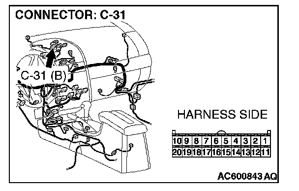 STEP 29. Check multi-center display unit connector C-31 [Mitsubishi Multi Communication System] for loose, corroded or damaged terminals, or terminals pushed back in the connector.