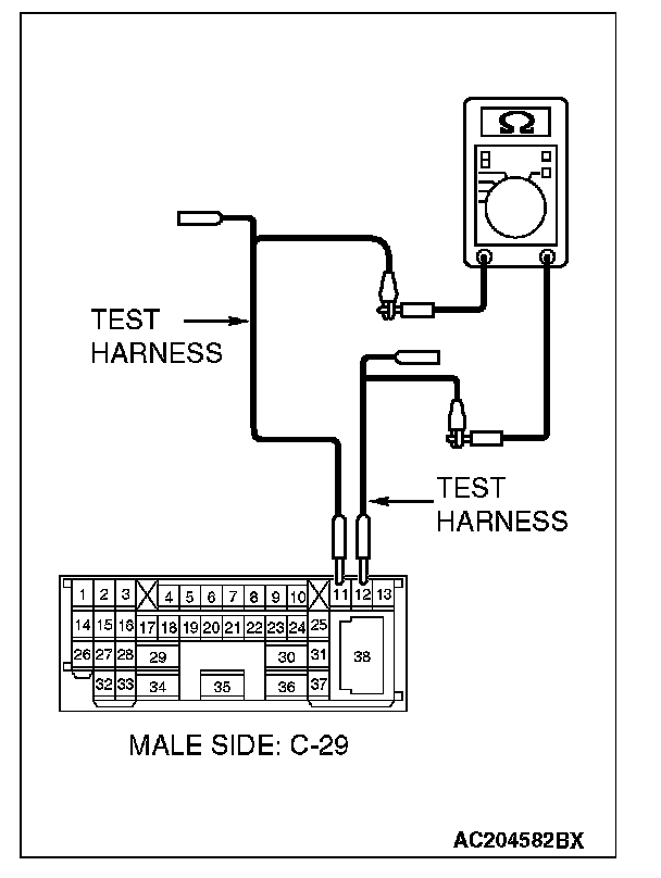 1. Disconnect intermediate connector C-29 and TCL/ASC-ECU connector A-42, and measure the resistance at the male side of intermediate connector C-29 (at front wiring harness side).