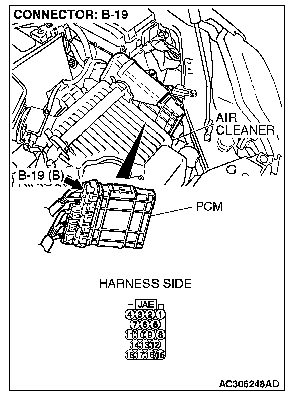1. Disconnect powertrain control module connector B-19, and measure the resistance at the component side of powertrain control module connector B-19.