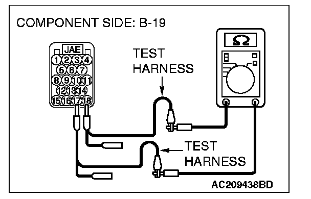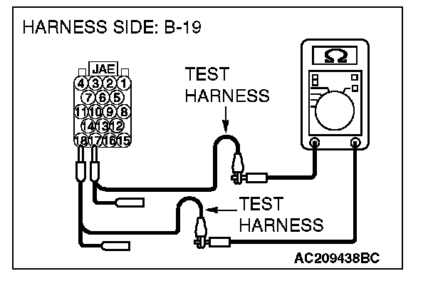 4. Measure the resistance between joint connector (3) terminals 8 and 19.
