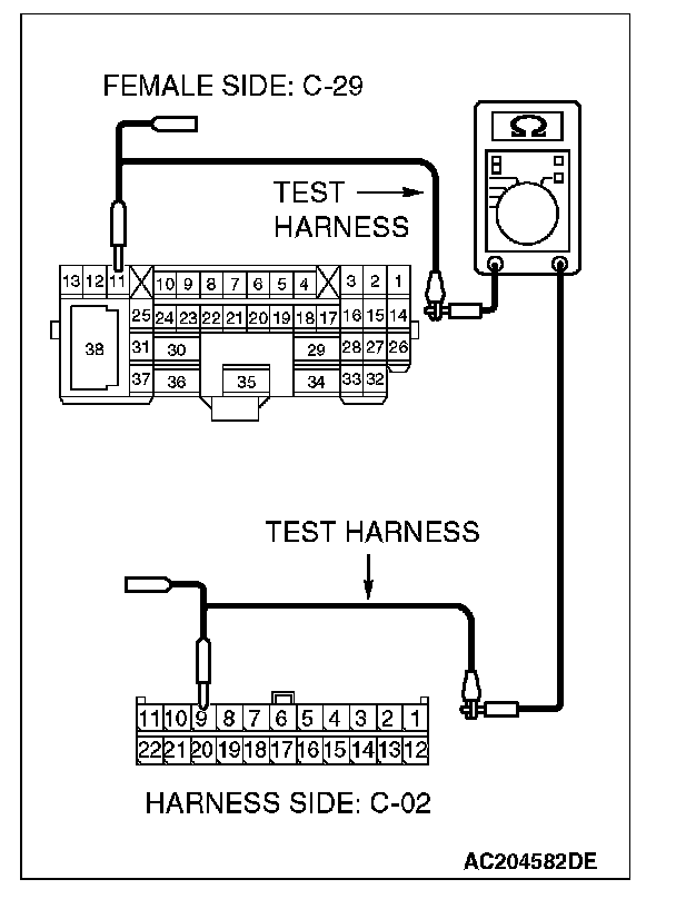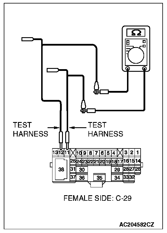 1. Disconnect intermediate connector C-29, and measure the resistance at its female side connector (instrument panel wiring harness side).