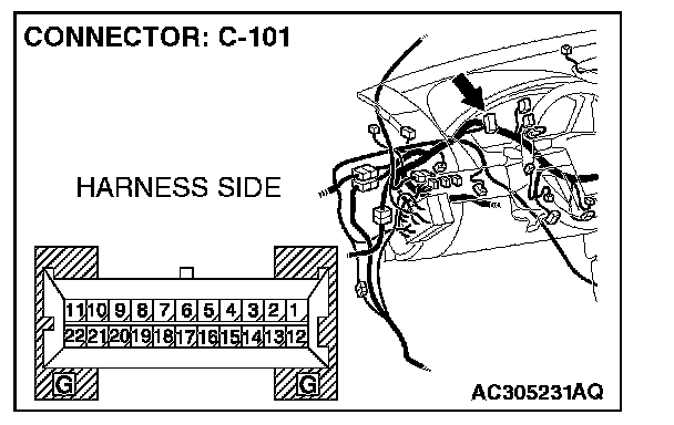 1. Disconnect combination meter C-101, and measure the resistance at the component side of combination meter connector C-101.