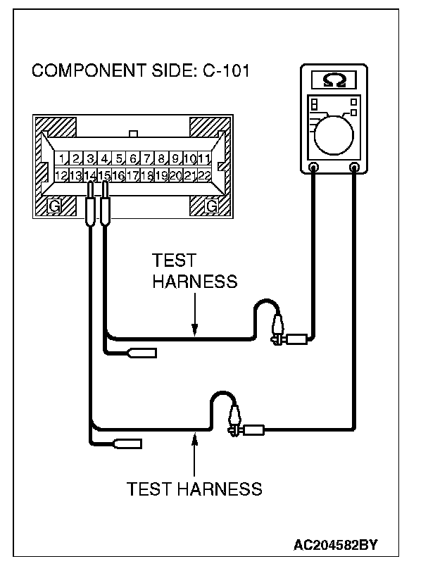 - The test wiring harness should be used.