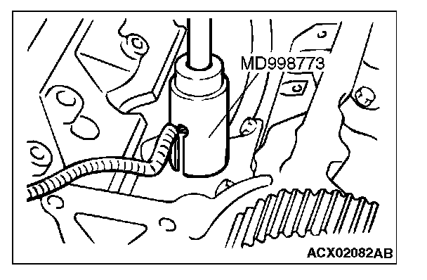 Use special tool MD998773 to tighten the knock sensor to the specified torque in the same manner as removal.