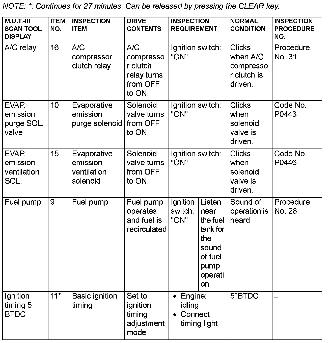 Actuator Test Reference Table (Part 1):
