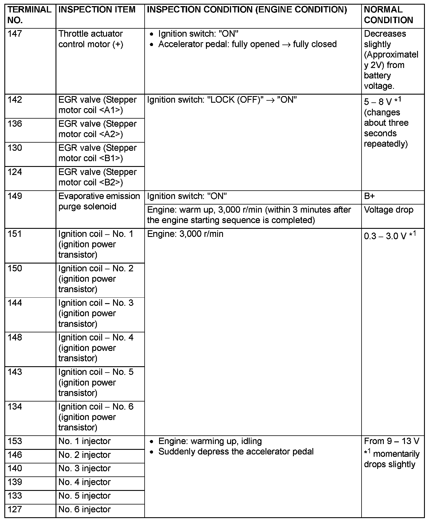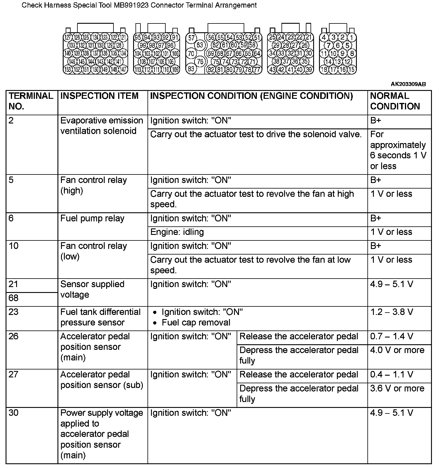 Terminal Voltage Check Chart (Part 1):
