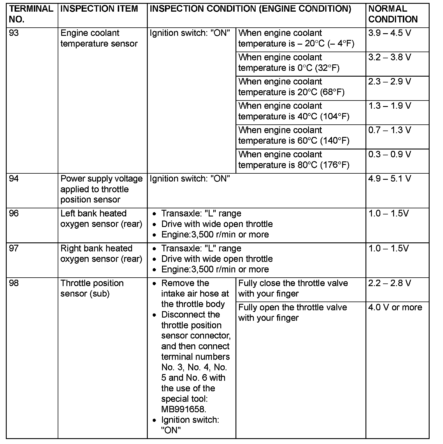 Terminal Voltage Check Chart (Part 4):