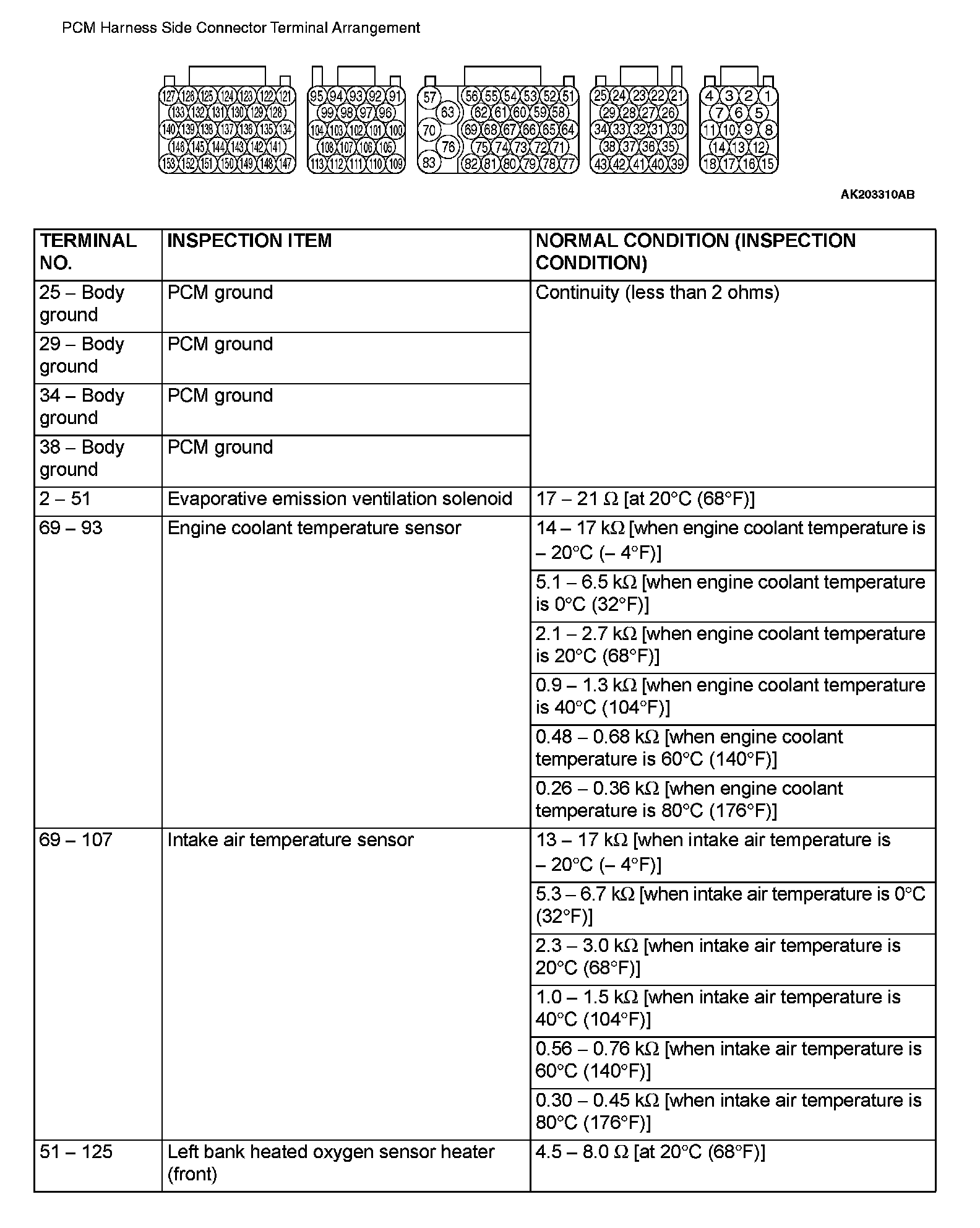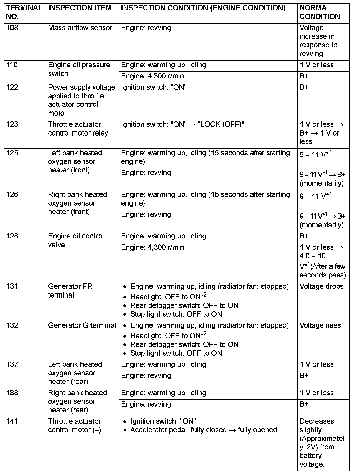 Terminal Voltage Check Chart (Part 2):