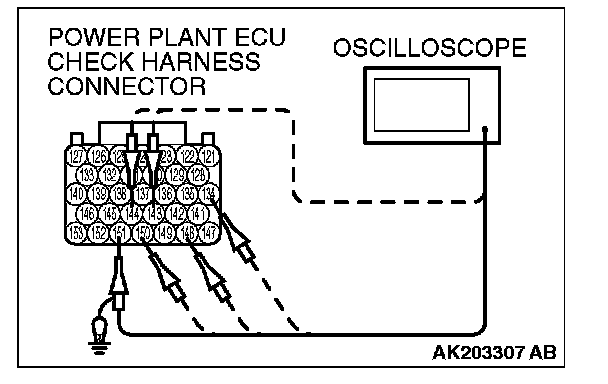 2. Connect the oscilloscope probe to each check harness connector terminal to analyze each cylinder: