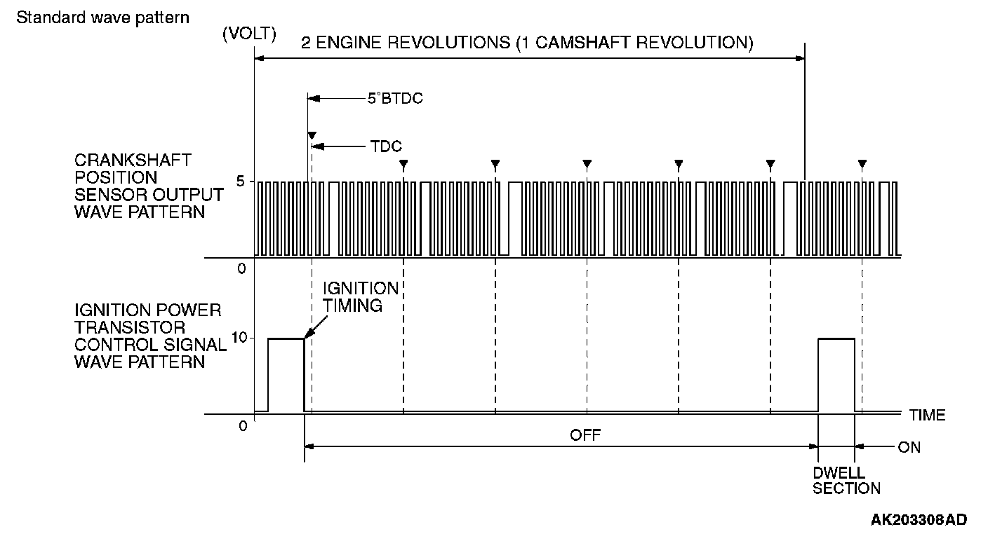 Point: The power transistor control signal (ignition timing) is advanced when the engine speed is increased.