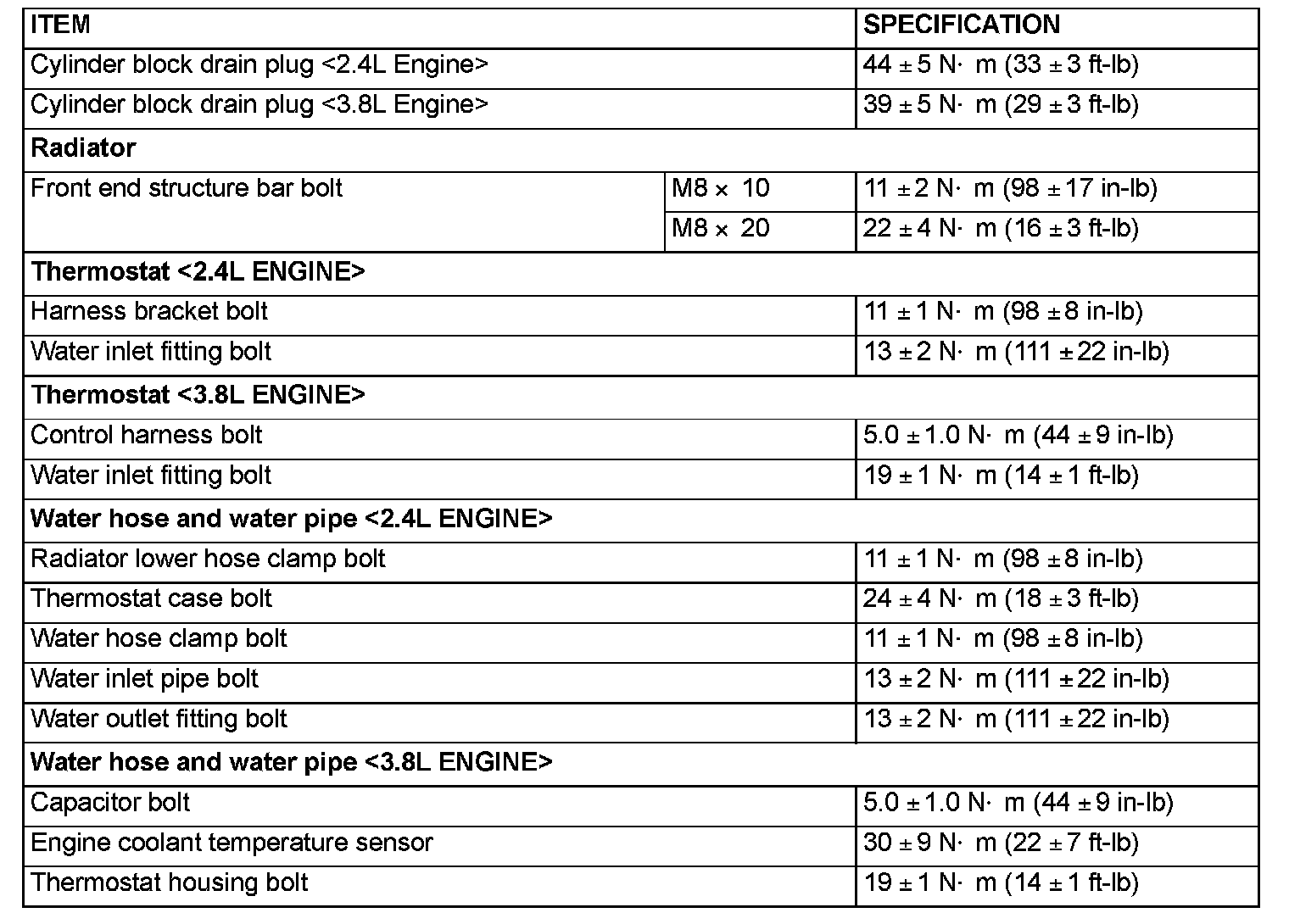 FASTENER TIGHTENING SPECIFICATIONS