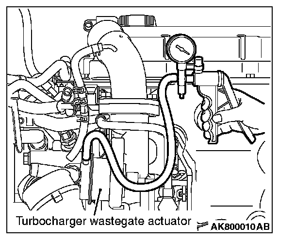 2. While gradually applying pressure, check the pressure that begins to activate (approximately 1 mm stroke) the turbocharger wastegate actuator rod.